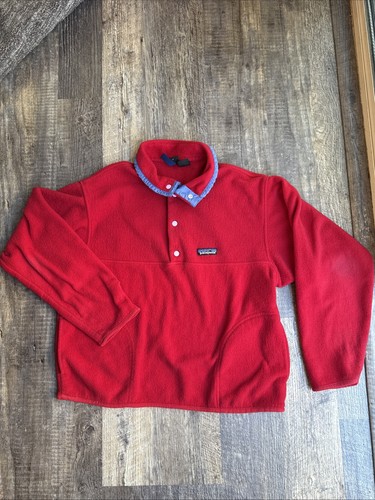 Kids 14 Fleece Red and Blue Pockets 1/4 Button Pullover Vintage flaw