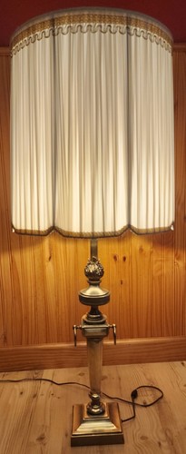 It is used, shows signs of use, and wear. BULB NOT INCLUDED. It has imperfections. Beautiful lamp though. But again, its used. Base to top of lamp shade is 42". Base to Bulb socket is 26".