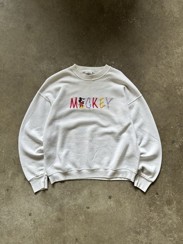 Vintage 90s Mickey Mouse Embroidered Spell Out Logo Sweatshirt White Sz L