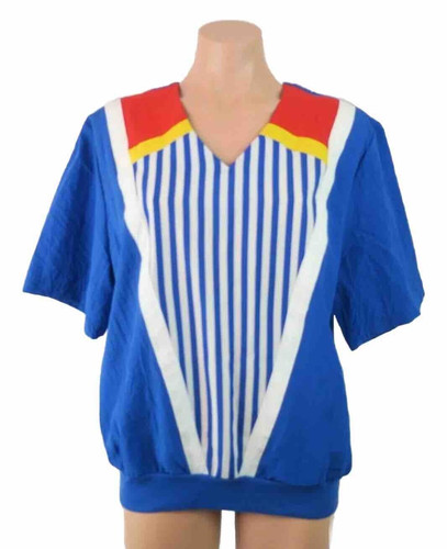 The Vtg 80s REMO II of California Color Block Blouse Top is a casual shirt with a sportswear/beach look that is perfect for boating or nautical activities. The M/L size and regular fit make it a versatile piece that can be styled in various ways for a stylish and relaxed look.
