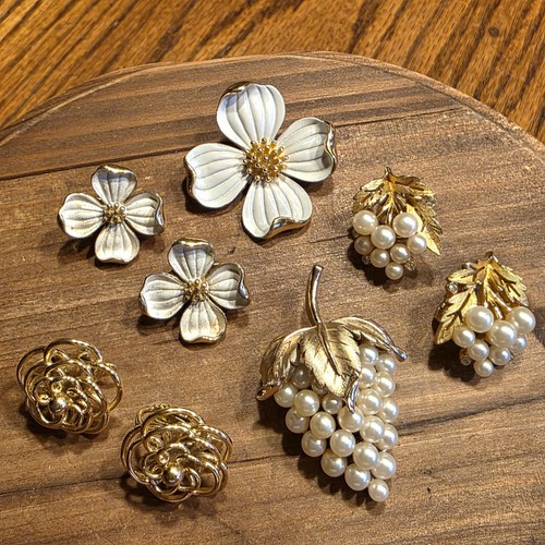 VTG TRIFARI Jewelry 8 Pieces Earrings Brooches Pins Gold Tone Rhinestone Pearl. Condition is Pre-owned - Excellent. Shipped with USPS Ground Advantage.