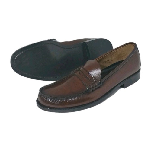 The product described is a very rare vintage pair of 1970s brown leather penny loafers from the brand Sandy Mcgee. These classic dress shoes are made of high-quality leather with a slip-resistant and lightweight design, perfect for comfort and style. The solid brown color and solid pattern make them a timeless addition for any man's wardrobe, especially for those who appreciate limited edition pieces and unique craftsmanship. Please check out my store! These shoes are very rare! I'm the only person that has them online in deadstock condition. They was never mass produced.