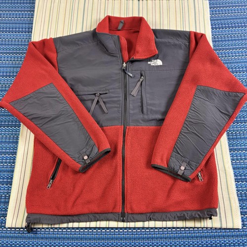 Vintage North Face Jacket Mens Large Red Gray Polartec Fleece Full Zip Outdoor