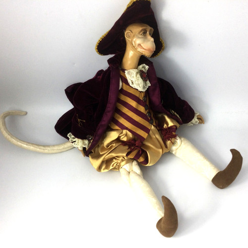 Long Tail. Legs are bendable, can be a shelf decor. Good condition, no stains or holes. Head is resin. Cloths are made of fabric. All handmade.