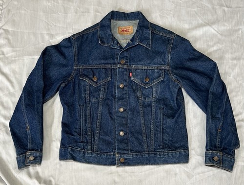 Vintage Levi’s Denim Jean Jacket 80s 70506-0216 Blue Men’s 42R Trucker Made USA S/M *** Has a cropped trucker slim fit. Fits more like small / medium. *** Has some loose strings & threads but overall good vintage condition. Please look over all pictures for condition and measurements. Smoke and pet free home. For any questions please ask. Thank you!