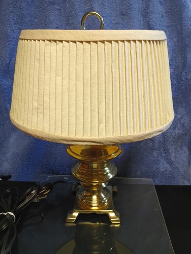 The vintage table lamp features a white light color and a design with a shaded lamp shade, adding a touch of nostalgia to any room. With a corded electric power source and incandescent lighting technology, this Berman brand lamp emits a warm and inviting glow. This original piece is perfect for collectors or those looking to add a unique touch to their home décor. The lamp includes a lamp shade and operates on 120V, making it suitable for both unisex adults and any environment with an A+++ - G energy efficiency range.