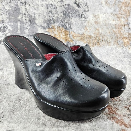 Vintage Womens 7 Black Platform Wedge Mules Clogs Shoes 90s Y2K