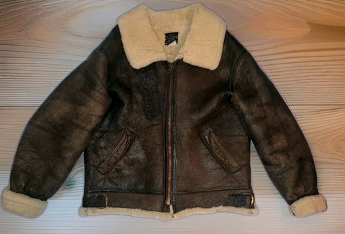 The VTG Avirex Type B-3 Real Mouton Bomber Lamb Leather Flight Jacket in size 42 is a vintage piece perfect for casual occasions. Made with sheep leather and featuring a full zip closure, this mid-length jacket exudes a classic flight style with a button-down collar. The brown color and USA-themed design make it a standout piece, reflecting the brand's renowned reputation for quality and heritage. Designed by SCHOTT and featuring the AVIREX character, this jacket pays homage to the vintage era and the USA Air Force, making it a unique and stylish addition to any wardrobe.