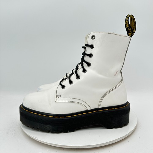 Jadon Women White Leather Yellow Stich 8 Hole Platform Boot