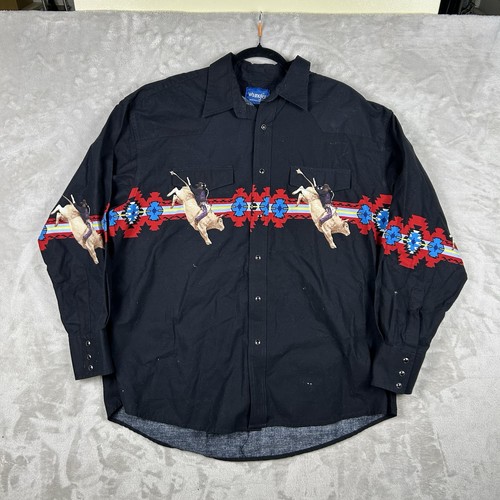 Vintage Men Jeans Western Cowboy Bull Rodeo Shirt Pearl Snap Bold XXL