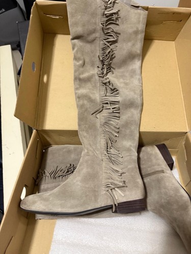 Nine West Vintage America Taupe Suede Fringe Knee High Western Boots 9