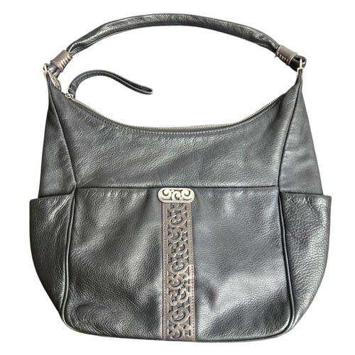 Brighton Y2k Caitlyn Black Pebble Leather Shoulder Hobo Bag Vtg Silver Scroll
