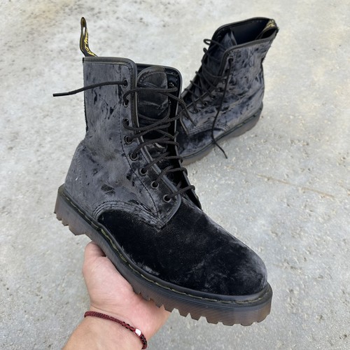 vintage england made dr martens black velvet suede high top leather boots made in england good condition tagged size 8