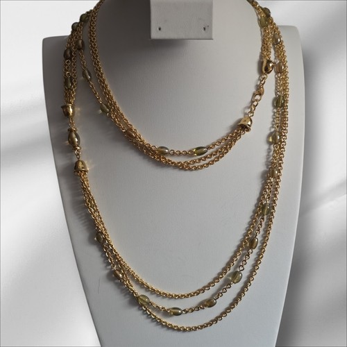 Beautiful Vintage Signed Monet 38 in goldtone 3 strand with green glass beaded necklace. This necklace is new old stock, not worn, excellant condition. Please view my STORE for more vintage jewelry, add me to your favorites and subscribe I combine shipping Imventory#482