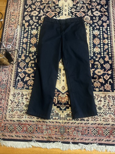 The product is a pair of Vintage 2013 Dickies 874 Original Fit Pants in size 32x30, designed for casual and workwear occasions. These black pants feature a mid-rise fit with a straight leg style, made from cotton material. They come with slash pockets, a flat front, and are machine washable. The Dickies 874 model is known for its durability and classic style, making it a versatile choice for any season.
