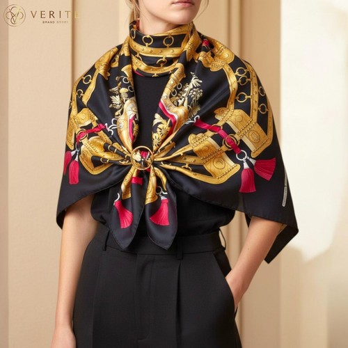 ARTIST : Caty Latham. TYPE : Scarf. MATERIAL : Silk. C : Fair, has been used feeling obviously, but still acceptable. MADE IN : France. AI-generated images are for styling reference only.