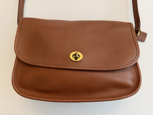 This authentic Coach purse is made of leather and features: Detachable strap with 21' drop. Back slip pocket. Minor scuffs and stains throughout exterior. Light tarnish on the hardware. Inside lining has minimal wear.