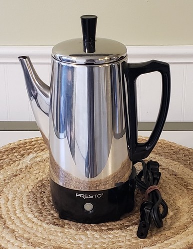 Vintage Presto Chrome 6 Cup Electric Percolator Coffee Pot Model 0282202 this coffee percolator is in very good to excellent cosmetic condition tested and works great