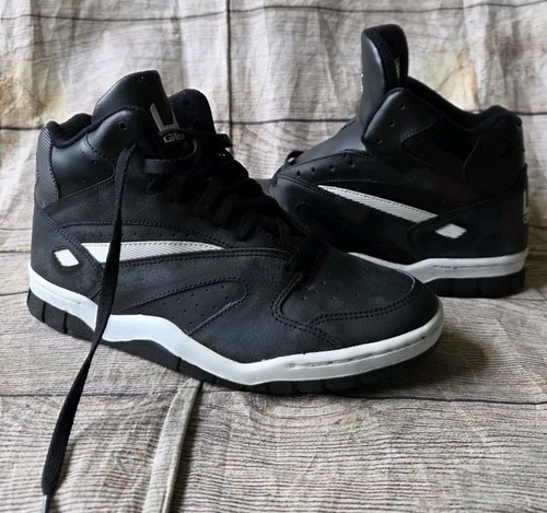 The product is a pair of vintage 90s LA Gear basketball shoes for men in size 8.5, featuring a lace-up closure and a black color scheme with distressed detailing. These sneakers are from 1992 and are part of the LA Gear product line, with a 90s theme and a solid pattern. They are suitable for activewear, casual use, and workwear, and are designed for winter, summer, fall, and spring seasons. Made of synthetic material, these shoes are perfect for basketball and baseball enthusiasts looking for a stylish and retro option. New with out box!! K5