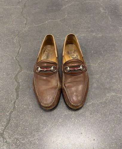 Crafted from luxurious leather with a solid brown color, these dress shoes feature the iconic Gucci Horsebit design. Perfect for formal occasions or adding a touch of luxury to any outfit, these Gucci loafers are a must-have for the discerning gentleman.