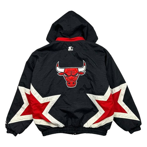 VTG 90s NBA CHICAGO BULLS STAR LOGO PUFFER JACKET FULL ZIP HOODED Sz XL