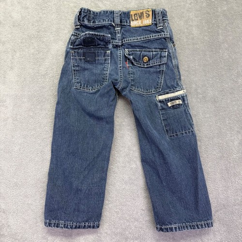 Kids Levi's blue denim jeans in size 5. These straight leg pants feature an adjustable waistband for a comfortable fit and classic Levi's styling. Fabric Type: Twill. • Leg Opening: 6.5 in. Type: Jeans.