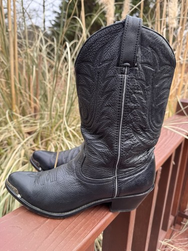 Vintage Durango Black Leather Cowboy Biker Boots RD560 Women's Sz 8.5. Good pre-owned condition. Piping has been peeled off/removed. Please refer to the pic's. Shipping with USPS or FedEx mail. If you have any questions please feel free to ask me. Thanks for looking and check out my other listings.