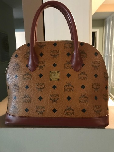 MCM Cognac Vintage Handbag. Missing Long Handle Satchel. Made in Germany. Excellent condition. Base is 11" by 5-1/2". Height is 9" not including the handle. Top zipper closure. Inside has zipper compartment.