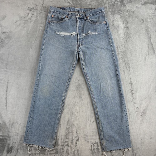 Vintage Levi’s 501 Men’s Jeans W33 L28 Light Blue Straight Leg Distressed USA