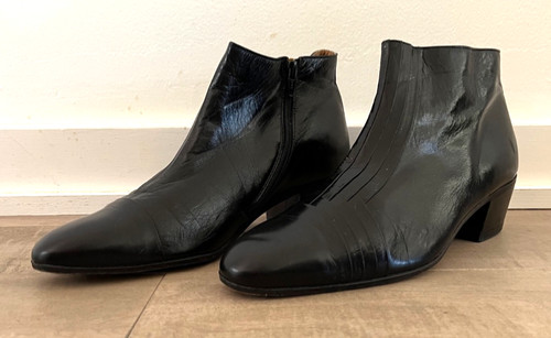 Pair of authentic vintage 1950s 60s men’s Chelsea Beatles mod ankle boots Soft, buttery black leather with side zippers and 2” heels Size 8.5 probably not suitable for wide feet Suitable for size 10 women as well Import fees responsibility of buyer