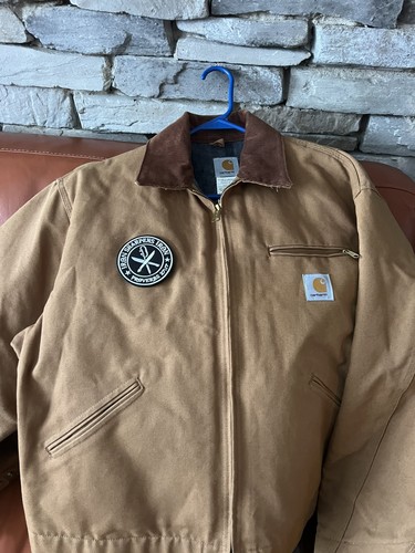 2001 Carhartt vintage Detroit j01 which got its name in 1998 but originally came out in 1954 with blanket wool interior as well as the inside of the sleeves which I would say it’s considered more vintage ..there is many on eBay that don’t show pictures of the inside of the sleeves and they have quilted sleeves so beware when buying., this one looks new and will fade out and age well when you start wearing it.it has a union patch which can easily be covered with a patch of your choice it is literally like brand new x large . (this particular style is going for $300-$500 , i just added a few patches to show you some options. Thanks for looking.