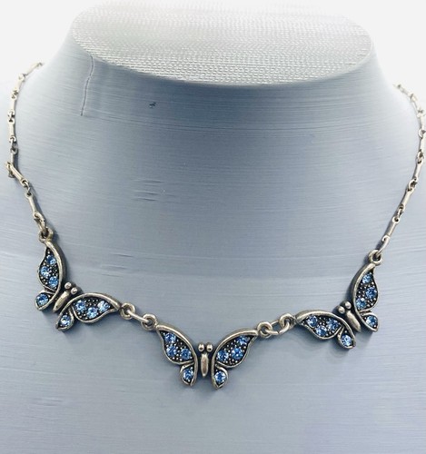 Vintage Butterfly Choker Necklace Silver Tone/ Blue Rhinestone Y2K 90s E3