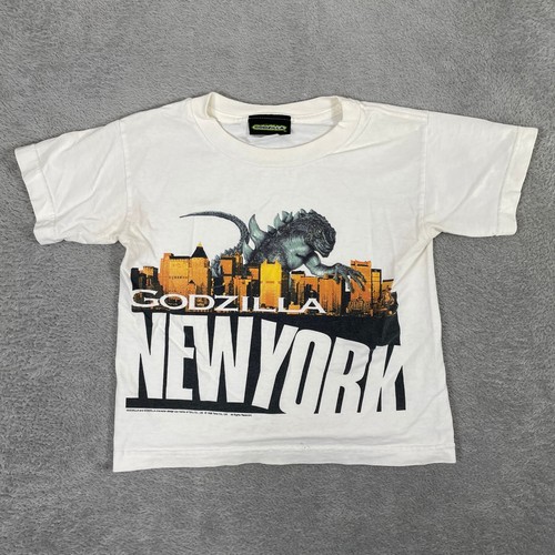 Godzilla, Kaiju, Movie Promo, 1990s, Vintage, Streetwear, Graphic Tee, New York City, Sci-Fi, Retro #godzilla #kaiju #90s #vintage #movie **no size, roughly youth medium** Two small holes on the front lower right. Yellowing/staining in both armpit areas. Faint staining on the bottom hem. Measurements are shown in the photos! Ships same or next business day