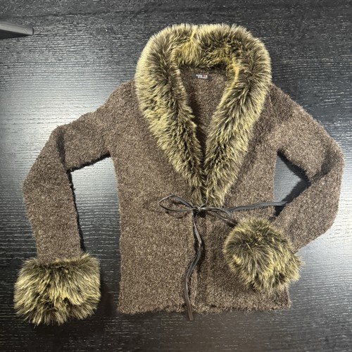 Warm brown teddy jacket. Features faux fur collar and cuffs. Stylish tie closure. Very warm!!! Beautiful cardigan fits like a medium. FABRIQUE EN FRANCE: Made in France BRAND: OGO ACRYLIQUE: Acrylic POLYAMIDE: Polyamide LAINE: Wool MOHAIR: Mohair ELASTHANNE: Elastane/Spandex FOURRURE: Fur MODACRYLIQUE: Modacrylic POLYESTER: Polyester TU: One Size