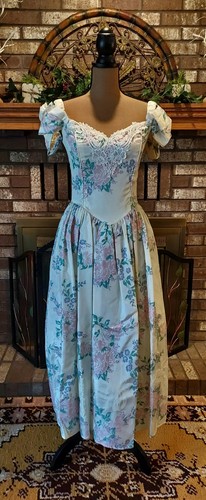 Vintage Scott McClintock Yellow Floral Lace Puff Sleeve Dress. Victorian Style. Floral embellishments. Back zipper. Size tag is missing. Measurements laying flat are 16" from pit to pit, 13.5" across the waist and 48" from shoulder to bottom. Gently used for its age. Zipper runs smooth. Has a vintage odor which is common with vintage clothing. See photos for all the details. The colors are beautiful with the main color being a soft yellow. The last two photos show the yellow color the best. Check out my other designer items. Fast shipping. Thanks for looking.