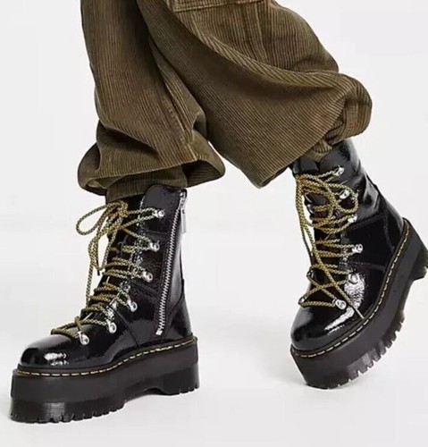 DR. Martens GHILANA MAX Platform Boots Black Patent Leather, Women's Size 5 US. Shipped with USPS Ground Advantage.