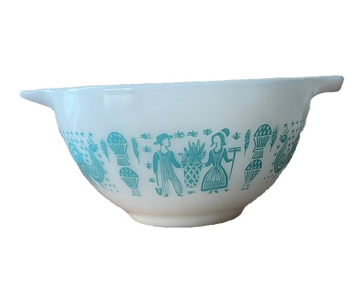 This round bowl features a glossy white and turquoise color with an impression backstamp. It is in really great condition. Nice colors. I should daily securely and quickly.