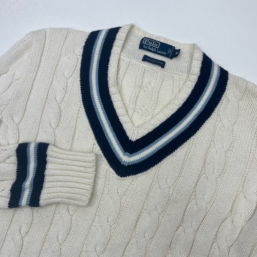 VTG Polo Varsity Iconic Cricket Sweater Sz M V Neck Cable Knit Rare