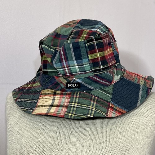 Vintage Polo Patchwork Madras Bucket Hat L Plaid Y2K 90s Preppy