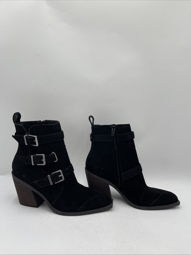 -Bottoms are barely worn -Creases on uppers The Crown Vintage Stralla Booties for women are stylish ankle boots in black suede with a high block heel. They are designed for casual or business occasions, offering comfort and a cowgirl theme. The boots are in size 8.5 US / 39.5 EU and feature a classic bootie style, making them a versatile addition to any wardrobe. D3
