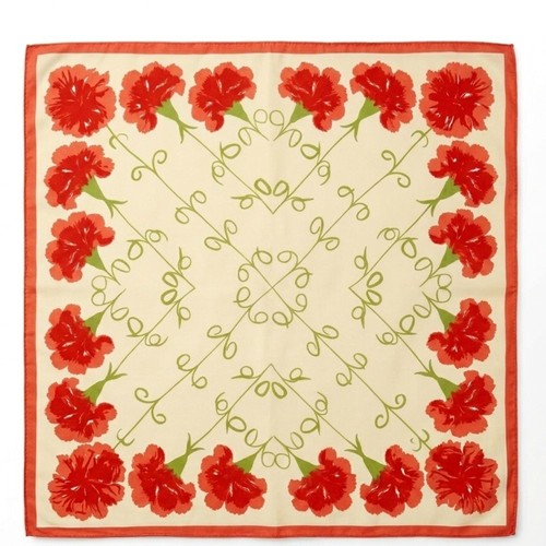 Designer: Vera Pure Silk (Vintage) Design: Red Orange Carnation Floral Print with Vine Motifs and Red orange Border Construction: Exquisite hand-rolled hems – a hallmark of quality and vintage authenticity. Fabric: Luxuriously soft and smooth silk Condition: EXCELLENT CONDITION Versatility: Tie it as a neck scarf, accent a favorite handbag (like the one shown!), wear as a headscarf, or even frame it as art. #Vera #VintageScarf #DesignerAccessory #Floral #SilkScarf