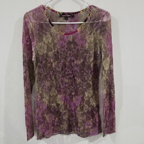 The Y2K Vintage Almost Famous Women's Floral Lace Sheer Top in size Large features a long sleeve, round neckline, and a pullover closure. Made of nylon and spandex, this multicolor blouse has a vintage floral pattern that fits the fairy and 90s themes. Perfect for travel, parties, or casual wear, this sheer top from the brand Almost Famous is a stylish addition to any woman's wardrobe. Measure a piece of clothing that fits you well and compare to provides measurements for accurate fit. Armpit to armpit approximately 15.5 inches. Shoulder to bottom hem approximately 27 inches.