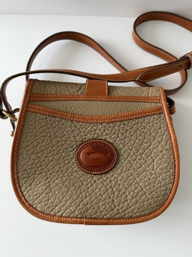 The Dooney & Bourke Taupe Brown Shoulder Bag with Gold Hardware is a classic and stylish accessory for women. Made from leather, this vintage bag features a pebbled finish with a solid taupe exterior and brown handle strap. The gold hardware buckle adds a touch of elegance to this casual shoulder bag, making it perfect for everyday use. The interior is lined with leather and includes inner pockets for organization. This iconic bag from Dooney & Bourke exudes timeless sophistication and functionality.