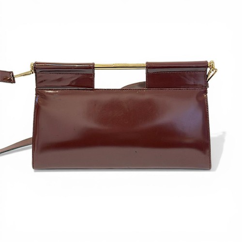 Patent Leather Shoulder Bag Brown Gold Hardware Vintage Compact Bag