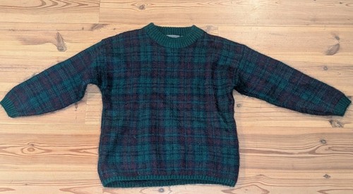 Vintage Maurices Tartan Plaid Mohair Blend Thick Crew Neck Sweater. Size Large. Color Green, Burgundy & Navy Plaid. 50% Acrylic. 50% Mohair. Pre-owned but in great shape!