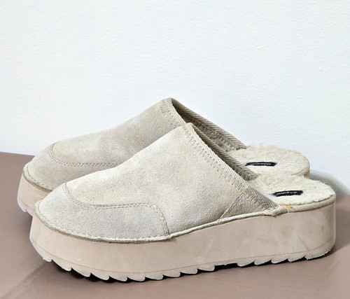 Style: slip-onclog mule ,chunky thick lug platform sole,boxy toe, Faux Fur lined, casual/comfort. Good pre-owned condition, gently used. Suede is in pretty clean, only minimal signs of wear.