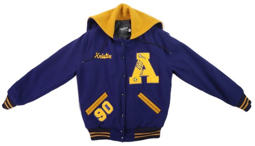 Acetate lining. Two hand pockets. Front embroidered patches Relaxed fit. Made by Nelson’s in the USA. Attached split hood. Preowned in near excellent condition. Tiny pin-sized moth holes on inner hood.
