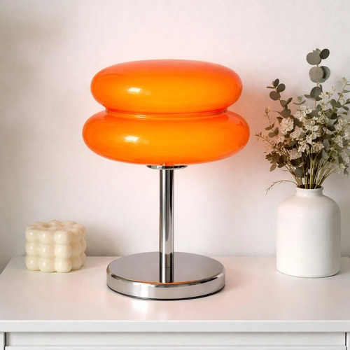Bedroom bedside lighting. Compact and stylish – ideal for bedside tables, desks, or living rooms. Add a bold pop of colour and modern retro style to your space with this stunning orange mushroom table lamp.