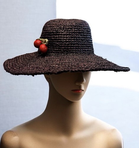 This piece has been well-preserved with the straw weave intact and the cherry accents firmly attached. No stains, odors, or fraying. See photos for details.