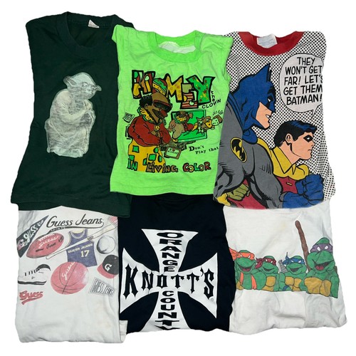 Lot of 6 Tees - 80s-90s Kids sizes, no tags Worn vintage condition, fading, some stains and or small holes possible. Returns always accepted!